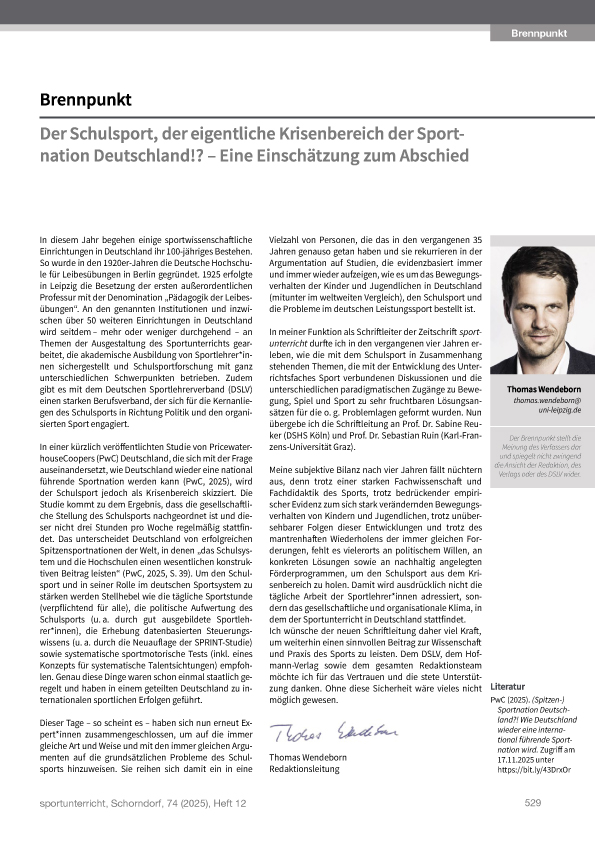 Neue Ausgabe der Zeitschrift sportunterricht: Dezember 2025
